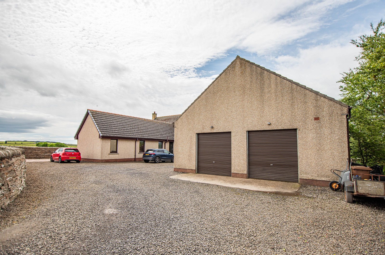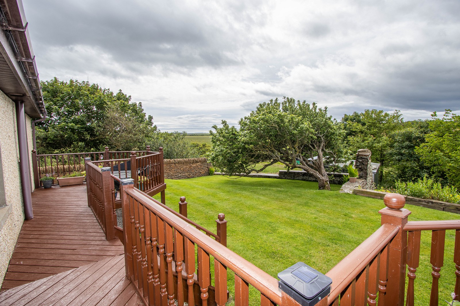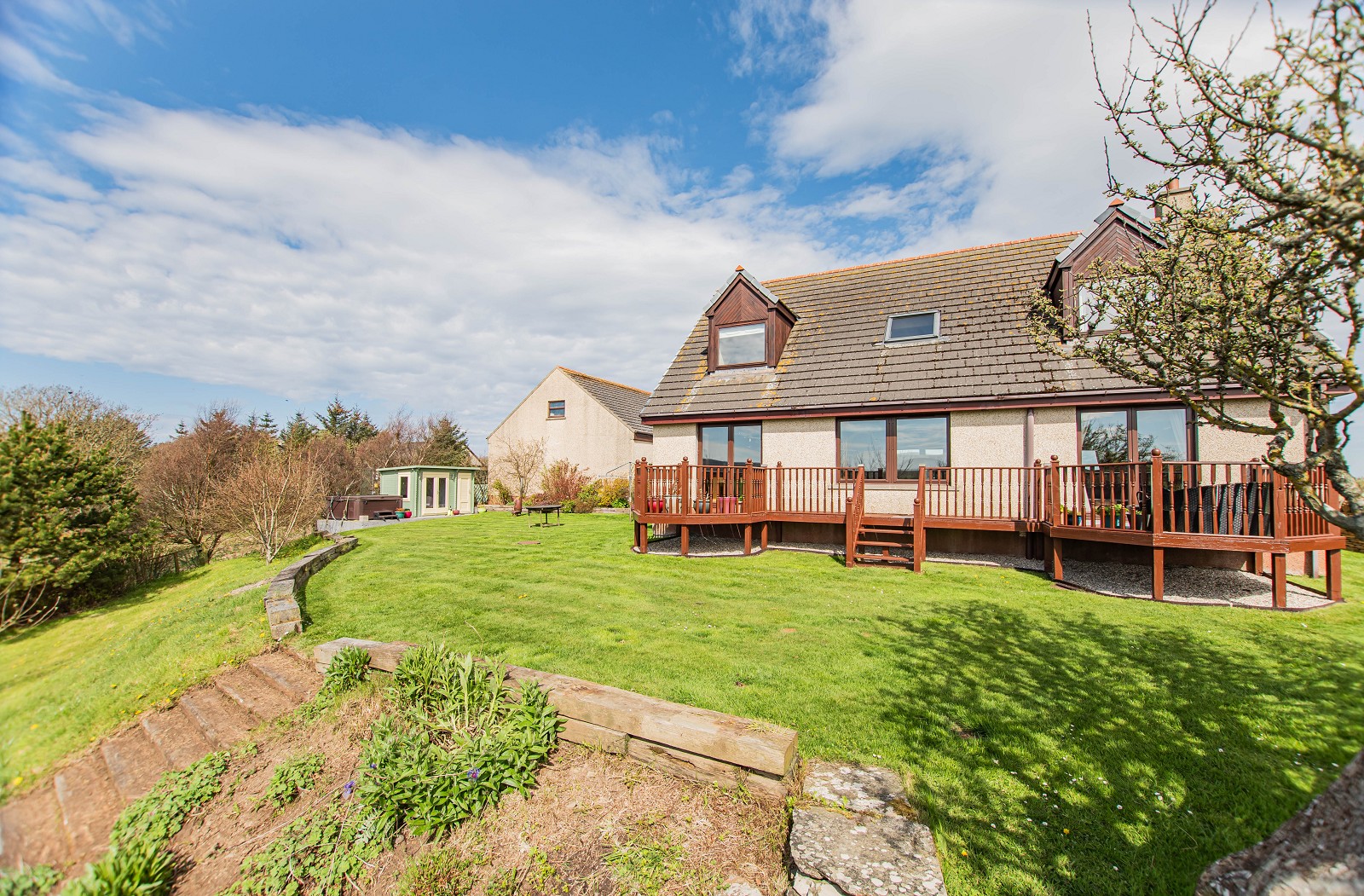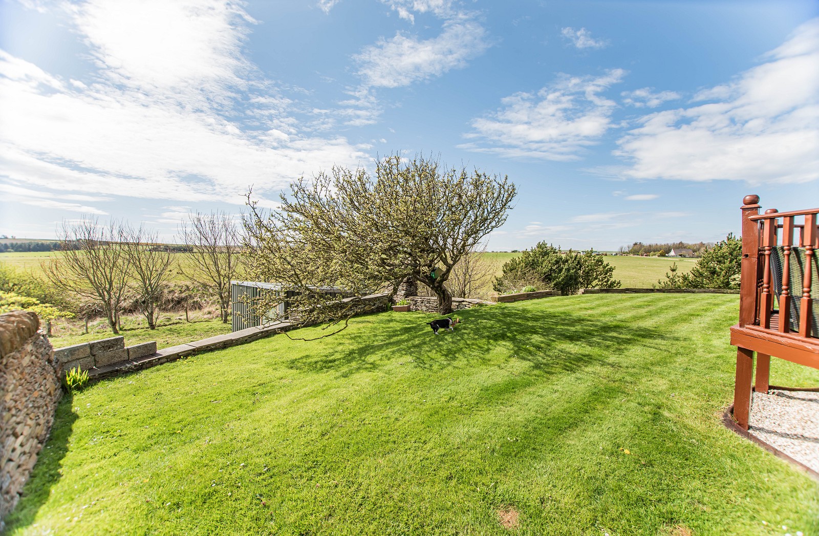 This property is accessed by a private gravel drive and a dry-stone dyke wall. The driveway is extensive with parking for multiple vehicles. A gate gives access to the tiered rear garden which is mainly laid to lawn with flower borders and a summer house. A raised decking area is ideal to sit in and entertain during the summer months and enjoys scenic rural views. The rear garden also features railway sleepers, Caithness flagstones and a dry-stone dyke wall. Steps lead down to the woodlands where there are birch, fir and other varieties of mature trees. The property also comes with a large paddock of good grazing which is ideal for equestrian enthusiasts. Within the field is a steel shed which was used as a field shelter for ponies. There is also a patio area to the front of the house which has a south facing garden.