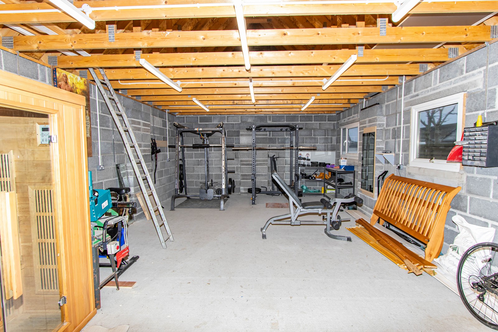 This beautiful property has a generous garden which is mainly grass and split into 3 sections with high boundary ranch style wooden fencing at the rear making this garden very private. The front garden has a stone wall which has been harled to match the house. A wooden fence and gate separate the front garden from a secluded area where the summer house and stone fire pit are. This area is also accessed from the patio doors in the lounge and is perfect for private outdoor entertaining. The summer house is fully insulated and the plaster boarded walls are painted blue, there is grey herringbone effect vinyl, ceiling spotlights and a wall mounted electric heater. On the front of the summer house there are two outdoor lights and there is a patio area in front. At one side of the house is a tarmac drive, with parking for several vehicles, which leads to a block built, harled double garage (approx 4.8m x 9.2m). The garage benefits from an electric u