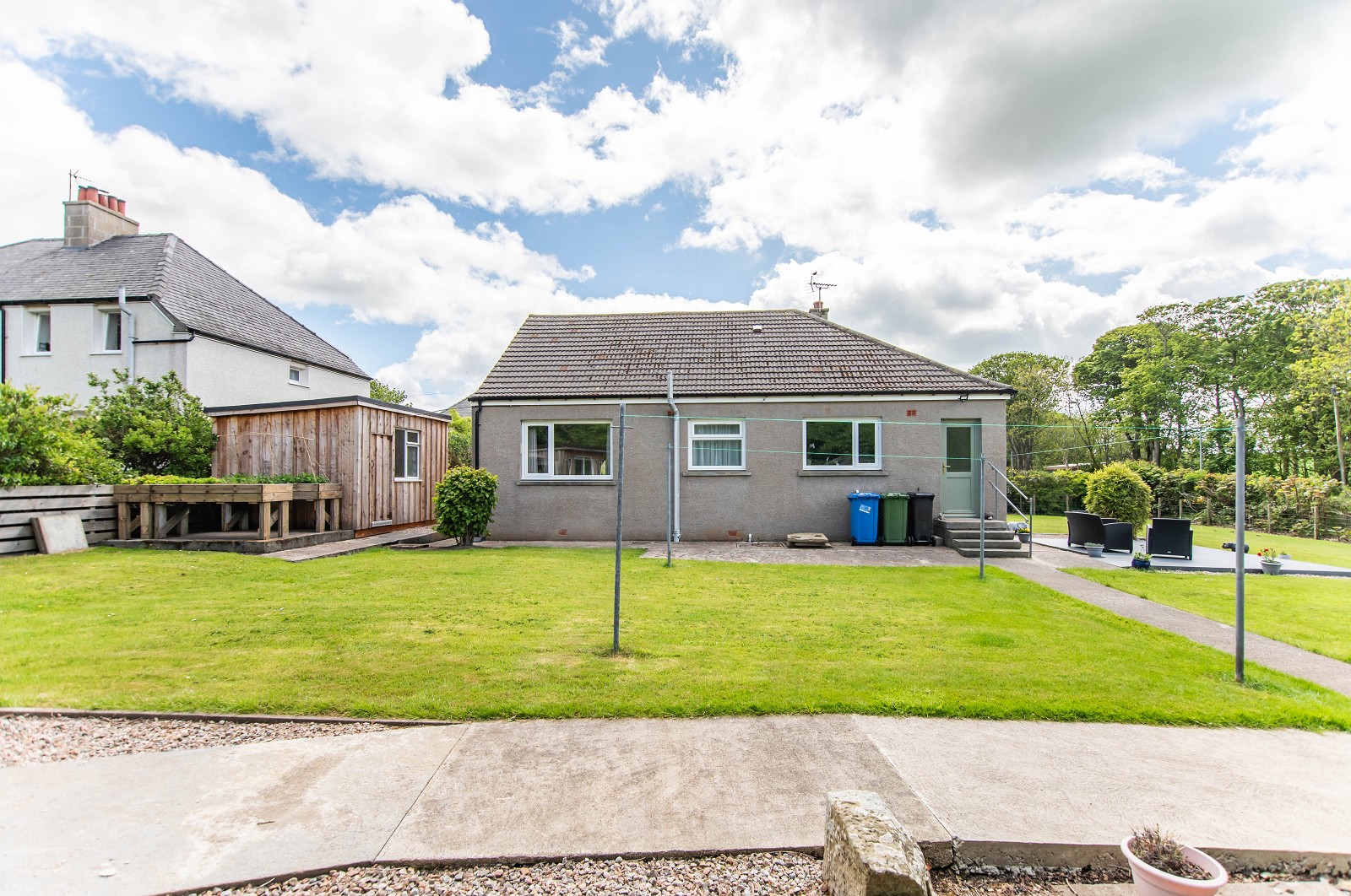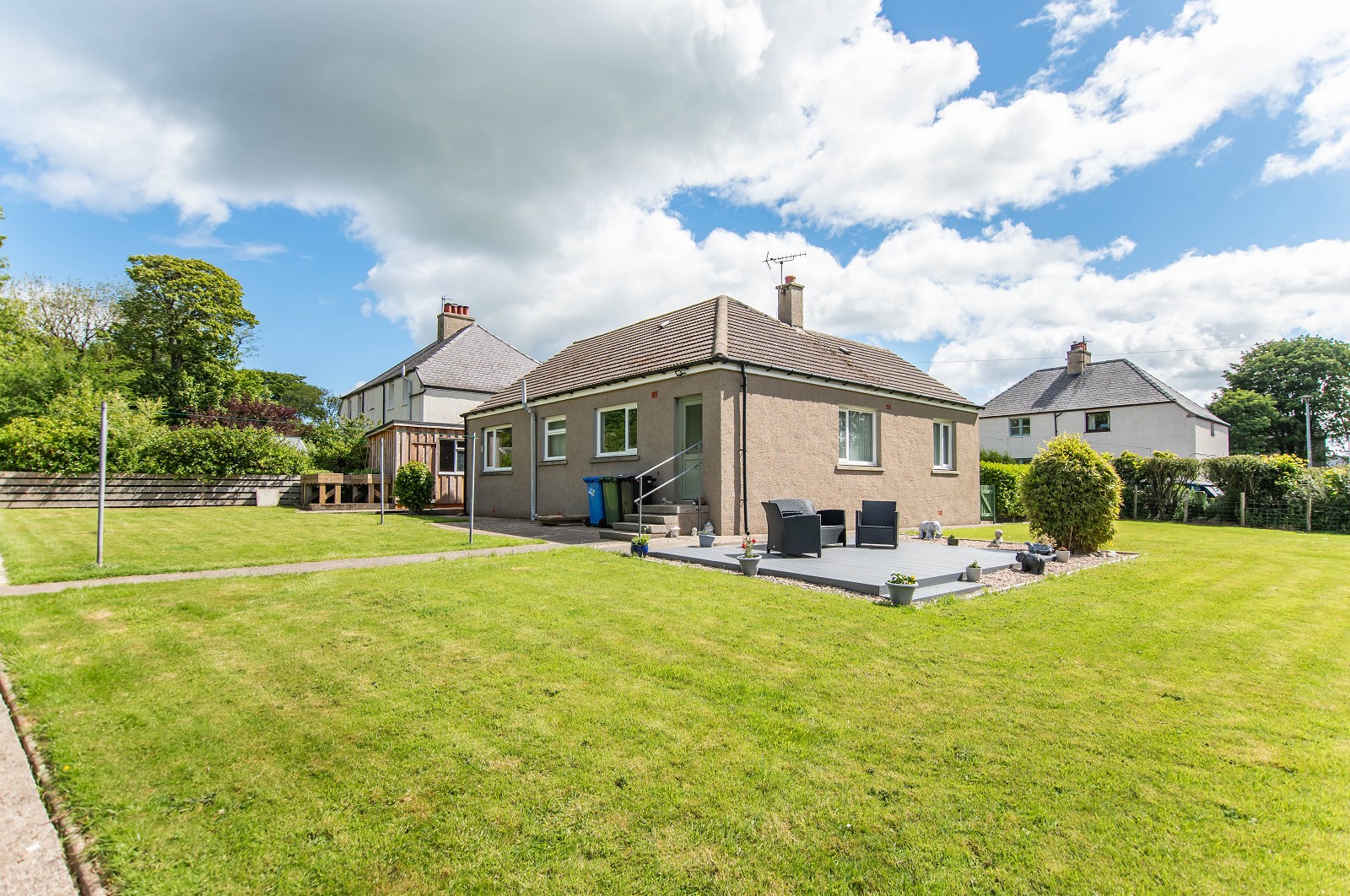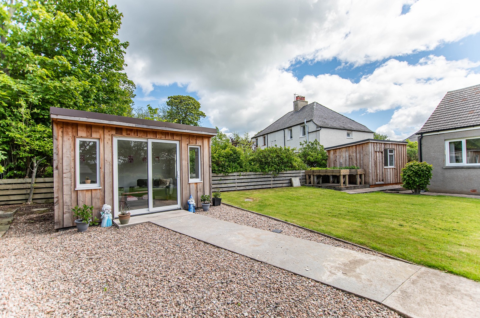 Externally this property occupies a generous plot. There is a summerhouse as well as a garage. The garden grounds are well maintained with mature trees, an area of lawn and a newly laid decking area. There are also two additional storage sheds.