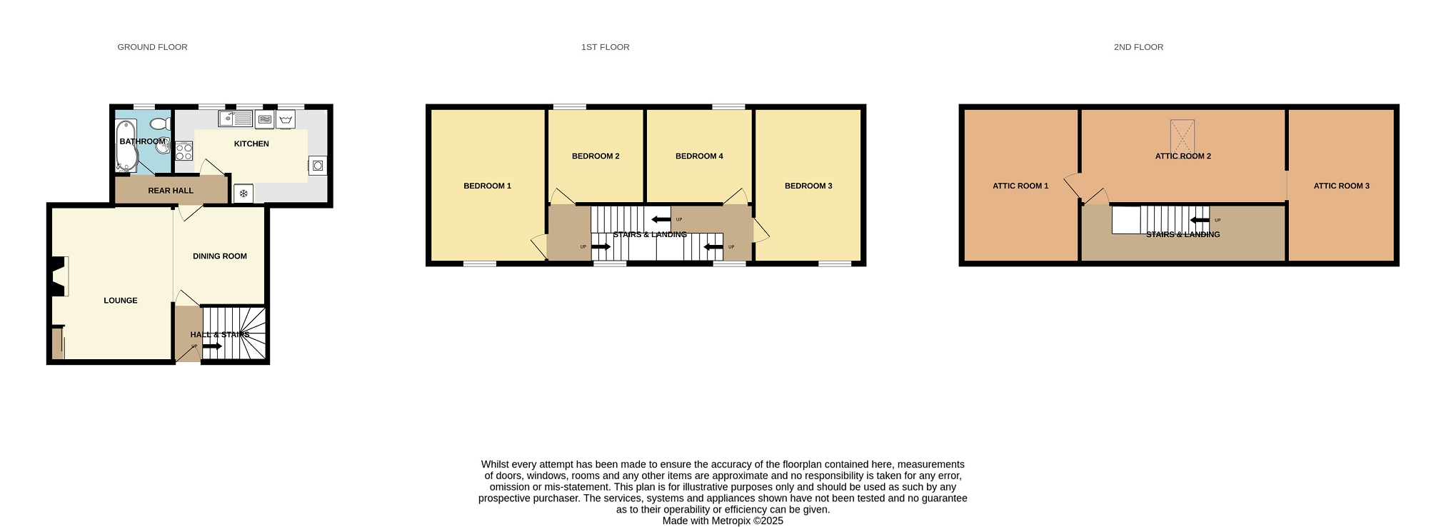 A solid straight flight wooden staircase gives access to three attic rooms on the second floor.