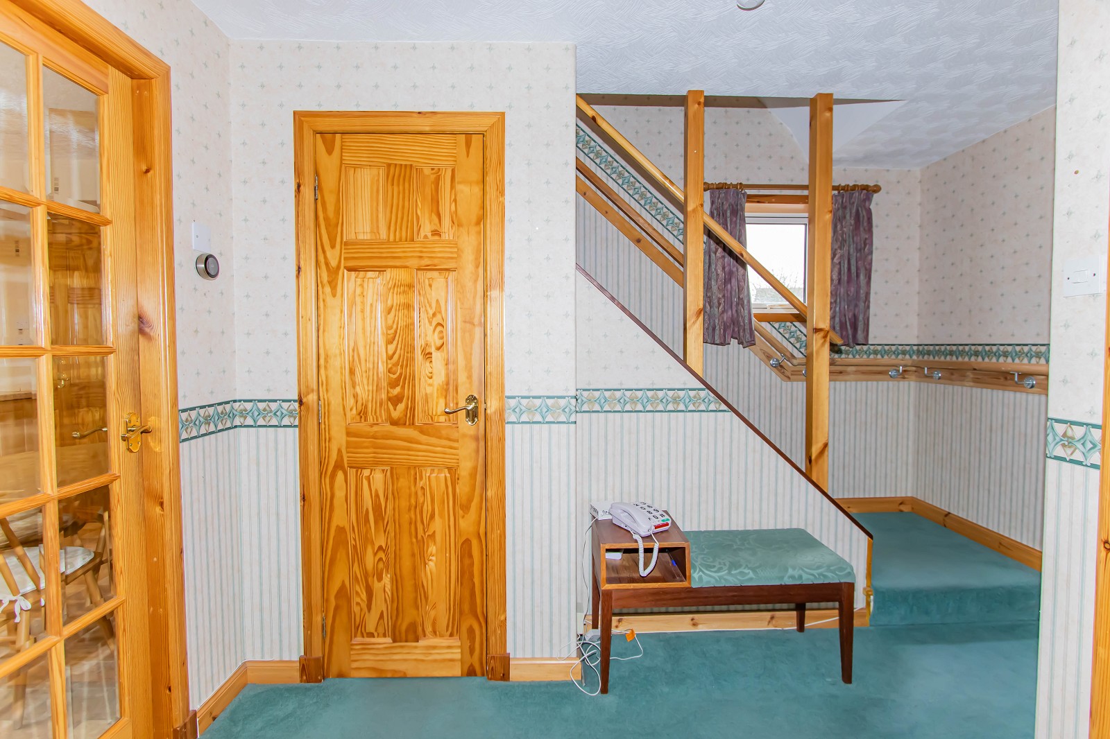 Accessed via a partially glazed UPVC door, the vestibule is well presented with wall papered walls, a pendant light fitting and a carpet. A pine fifteen pane panel door gives access to the inner hall.