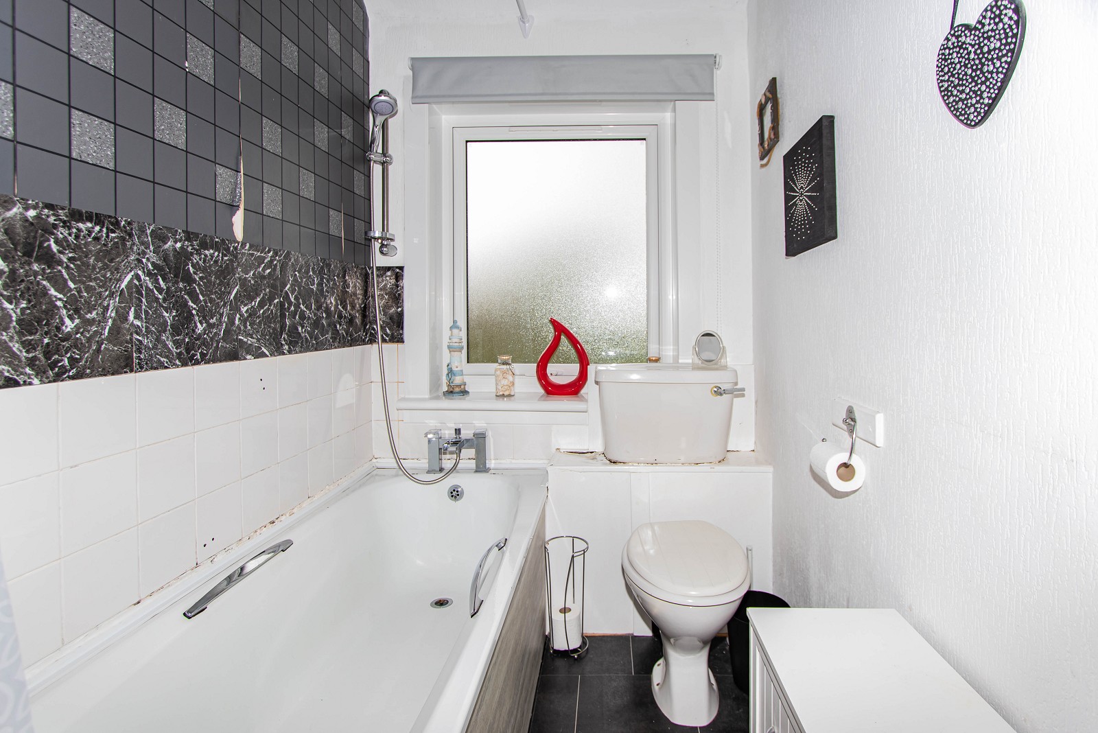 The kitchen is well presented with a good selection of oak shaker style wall and base units with black laminate worktops. There is a stainless-steel sink with drainer and a built-in four-ring hob with oven below. Space can also be found for a washing machine and a window with blinds faces the front elevation. Vinyl has been laid to the floor, there is a central heating radiator, a chrome light fitting, coving and a smoke alarm as well as space for a table and chairs. A door leads to the rear hall.