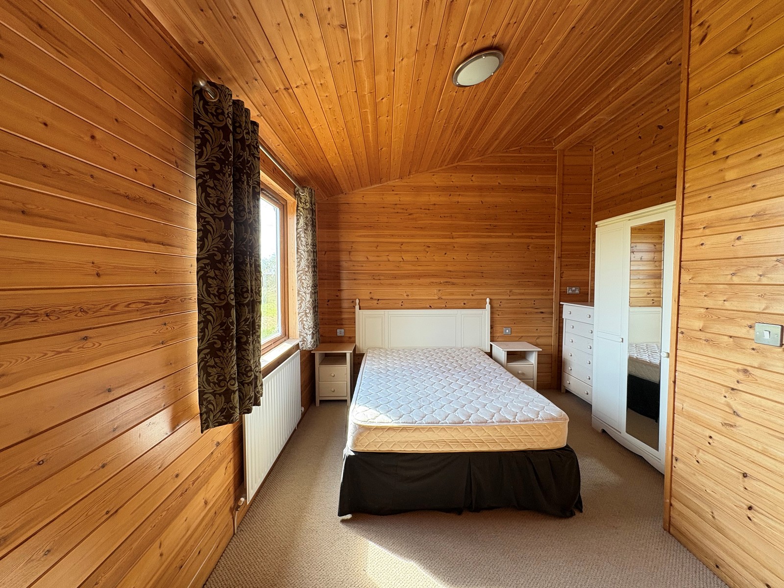 This beautiful chalet may also look a little tired on the outside, inside it is a beautiful chalet with high ceilings, the ceilings and walls are all wood-lined. There is a beautiful kitchen/diner/lounge, two bedrooms (one with ensuite) a bathroom and a utility room.