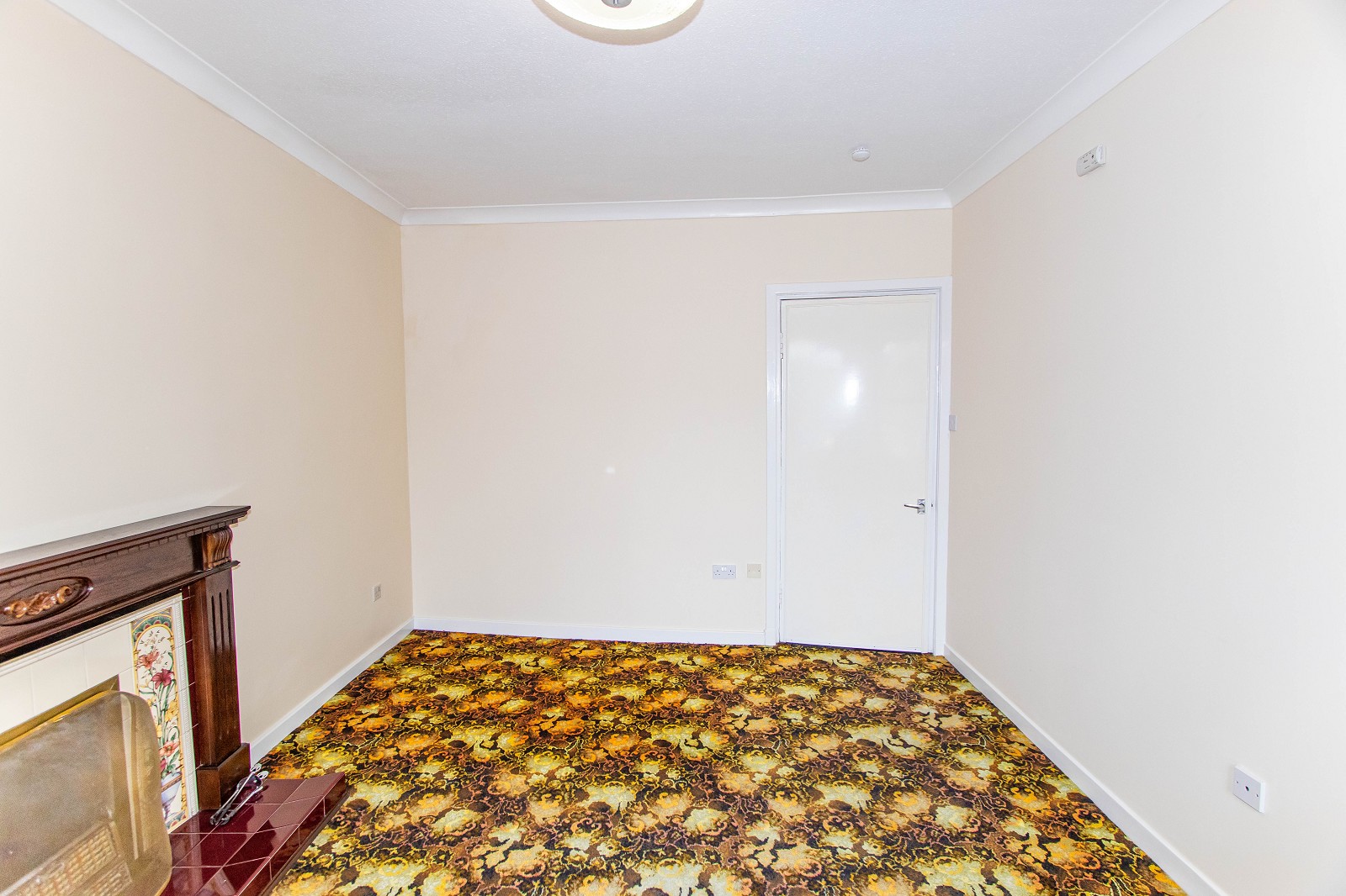 The spacious lounge has magnolia painted walls and two windows which face the front elevation. There is an attractive mahogany fireplace with an open coal fire, a fitted carpet as well as power points. This room is bright and also benefits from coving, a pendant light fitting and a storage heater.
